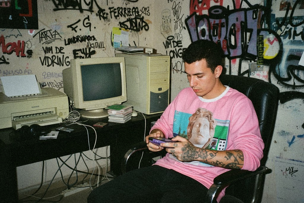 Este não foi um produto; foi um artefato da nossa exploração da vanguarda. O “2000’s” nasceu na intersecção do classicismo com a nostalgia digital, uma pergunta que fizemos a nós mesmos: “Qual é a aparência de uma memória de internet?”