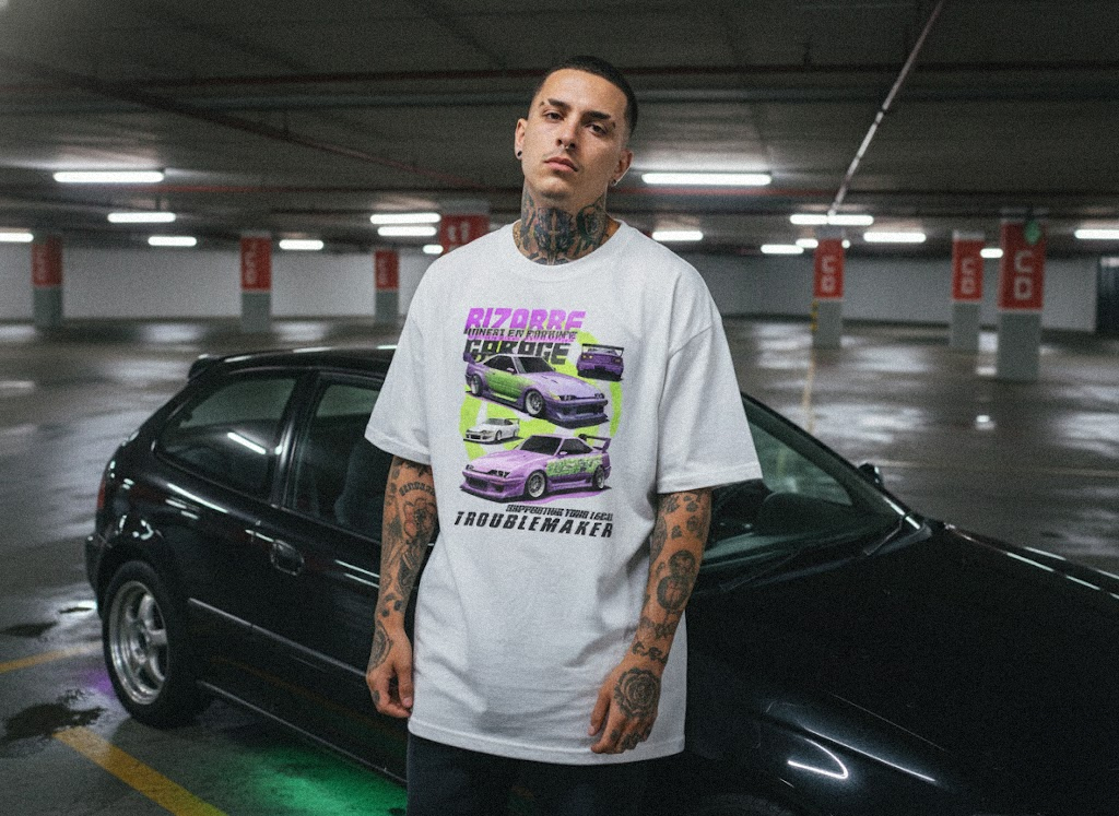 Este não foi um produto; foi uma história que se veste. O “Troublemaker Garage” nasceu na intersecção direta do asfalto com a nostalgia analógica, materializando a estética de uma revista tuner perdida dos anos 90.