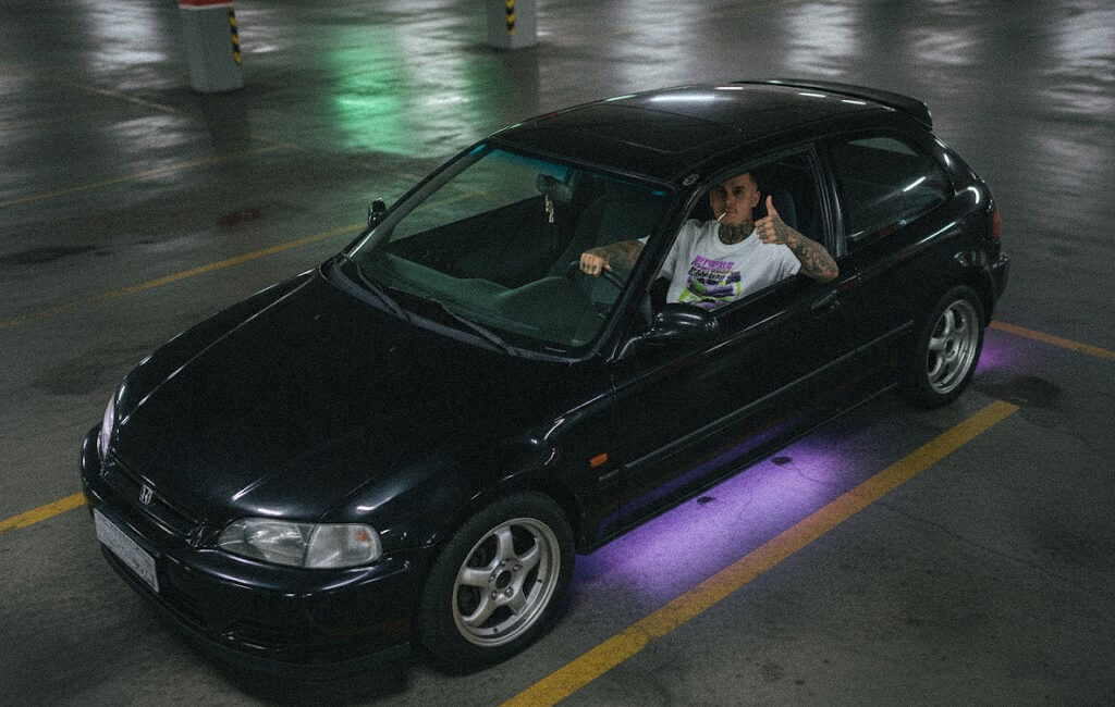 O resultado foi esta estampa. Uma homenagem à cultura JDM, capturada no visual granulado e nas cores saturadas—o roxo e o verde-fósforo—de uma era pré-digital. É a própria “Cultura de Rua e Asfalto” transformada em arte tangível.